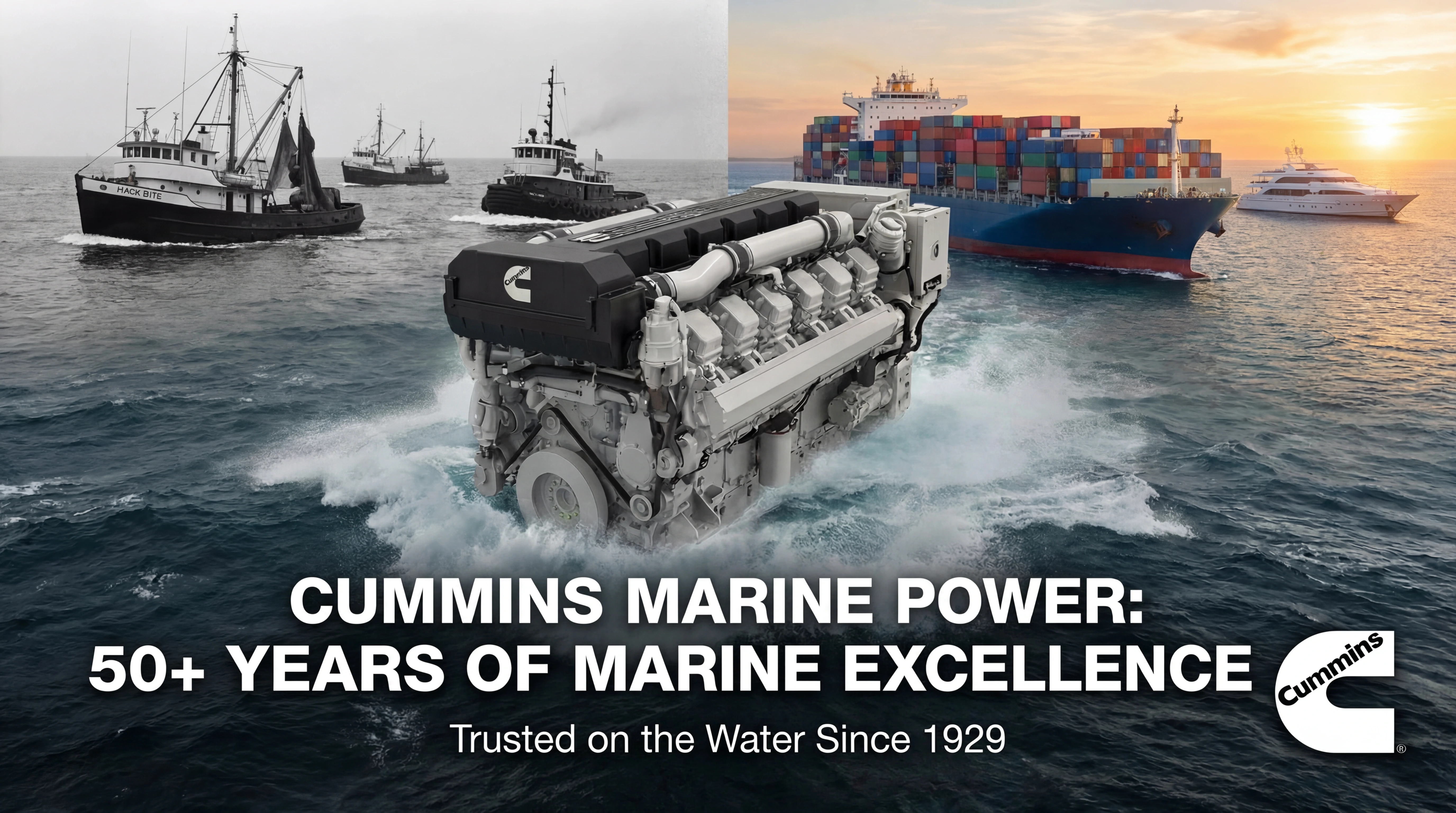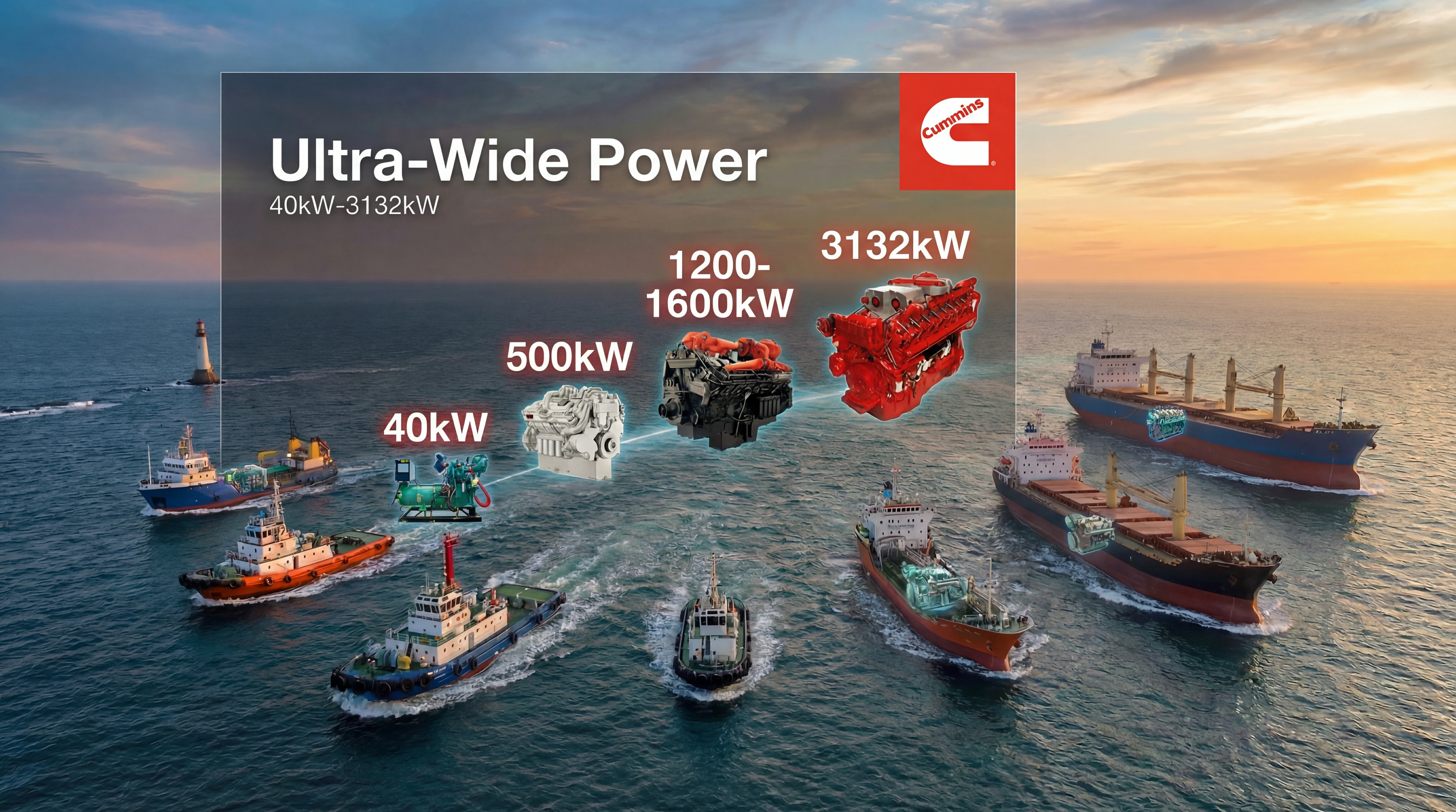 hp),适用于严苛的商用船舶工况,同时覆盖超级游艇及游艇辅助船应用。采用康明斯模块化高压共轨燃油系统,提升怠速稳定性并有效降低噪声与振动。满足